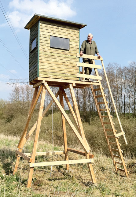Die NEUE Kanzel "Höllkopf 1.3" gibt es ab sofort in der Größe 1,30 x 1,30 x 2,00m ebenfalls mit einem seitlichen Podest 1,30 x 0,80m mit Geländer. Sie ist OHNE Sitzbank, aber mit Ablagen dreiseitig, gut geeignet für einen Drehstuhl (nicht im Preis enthalten). Der Preis ist wie der der "Höllkopf XL"!